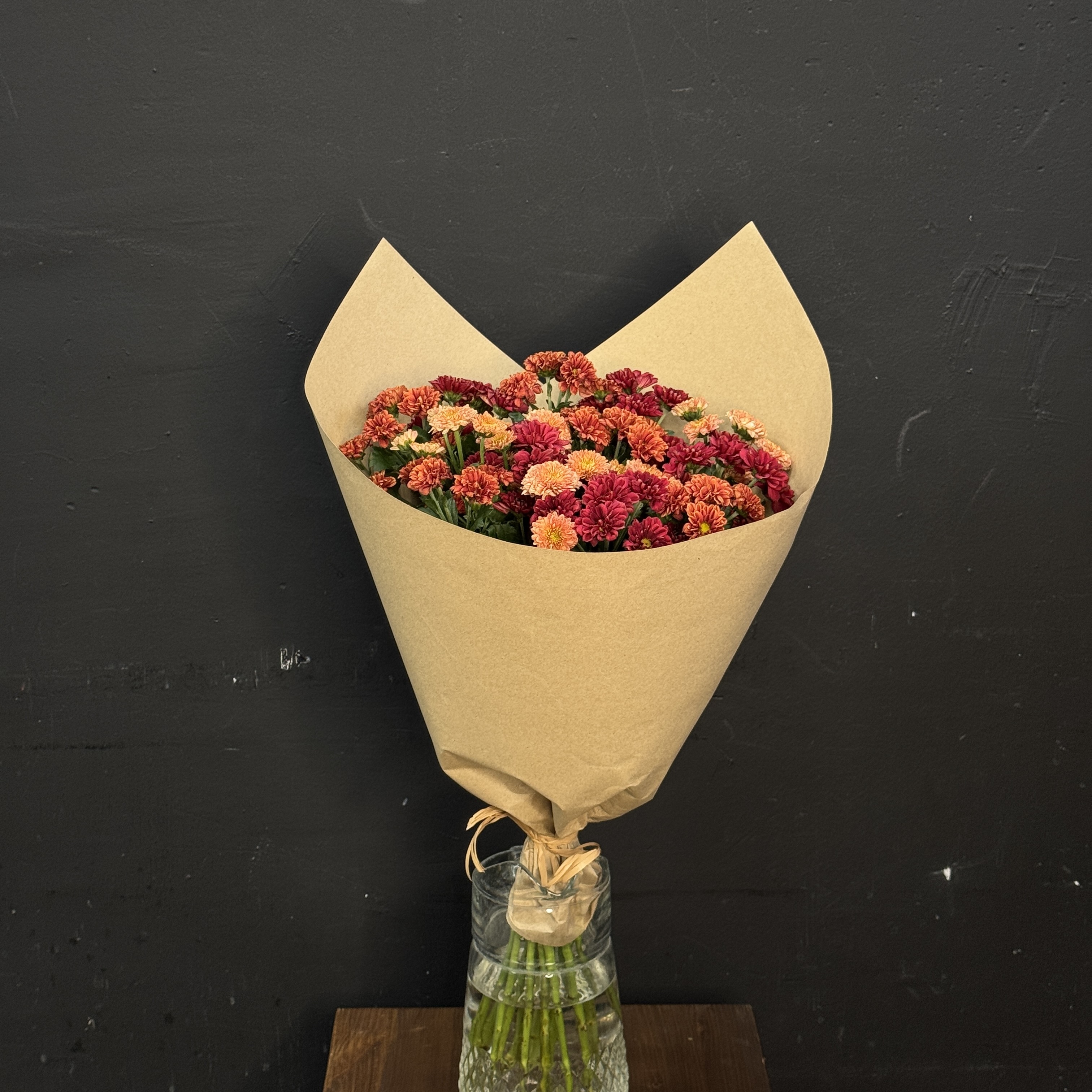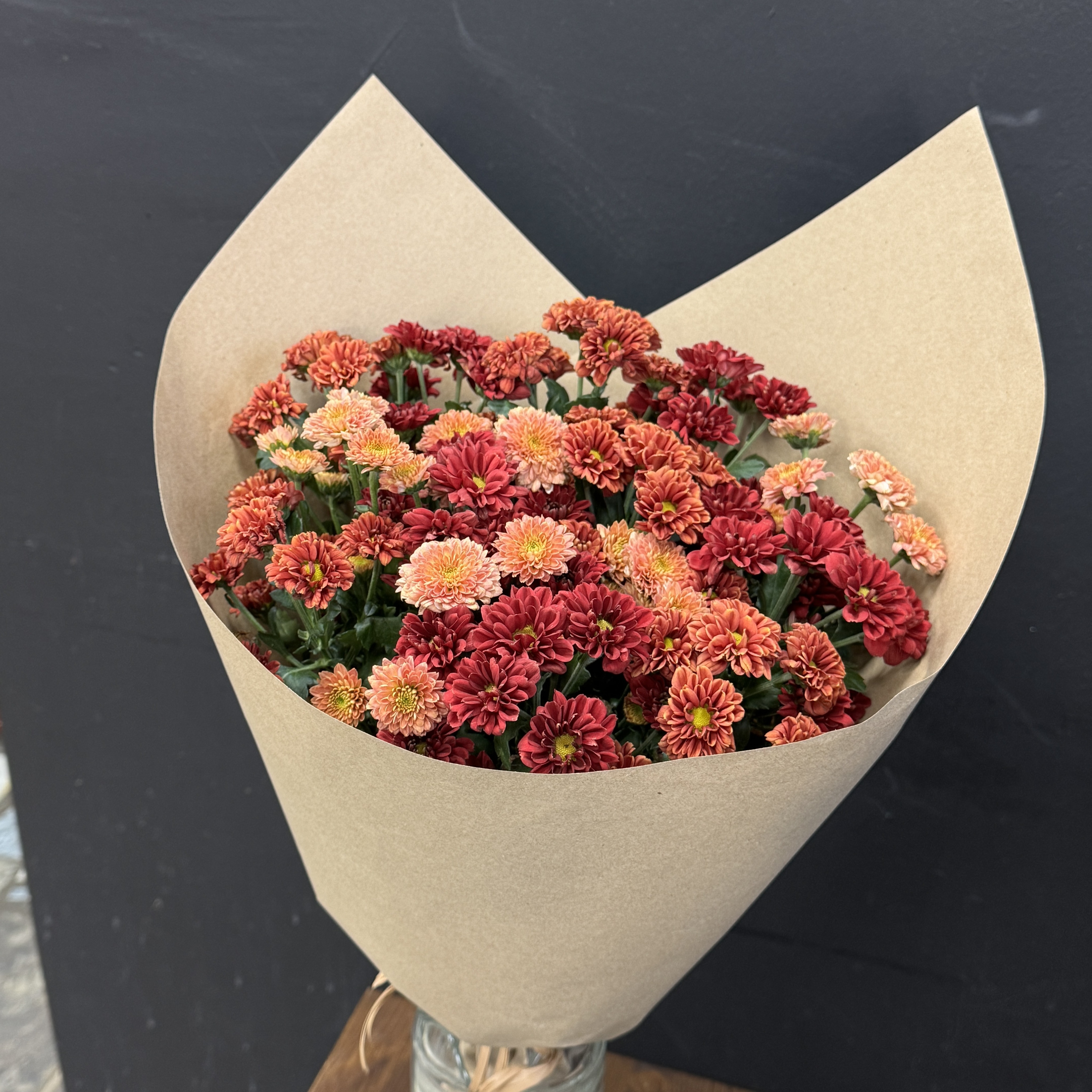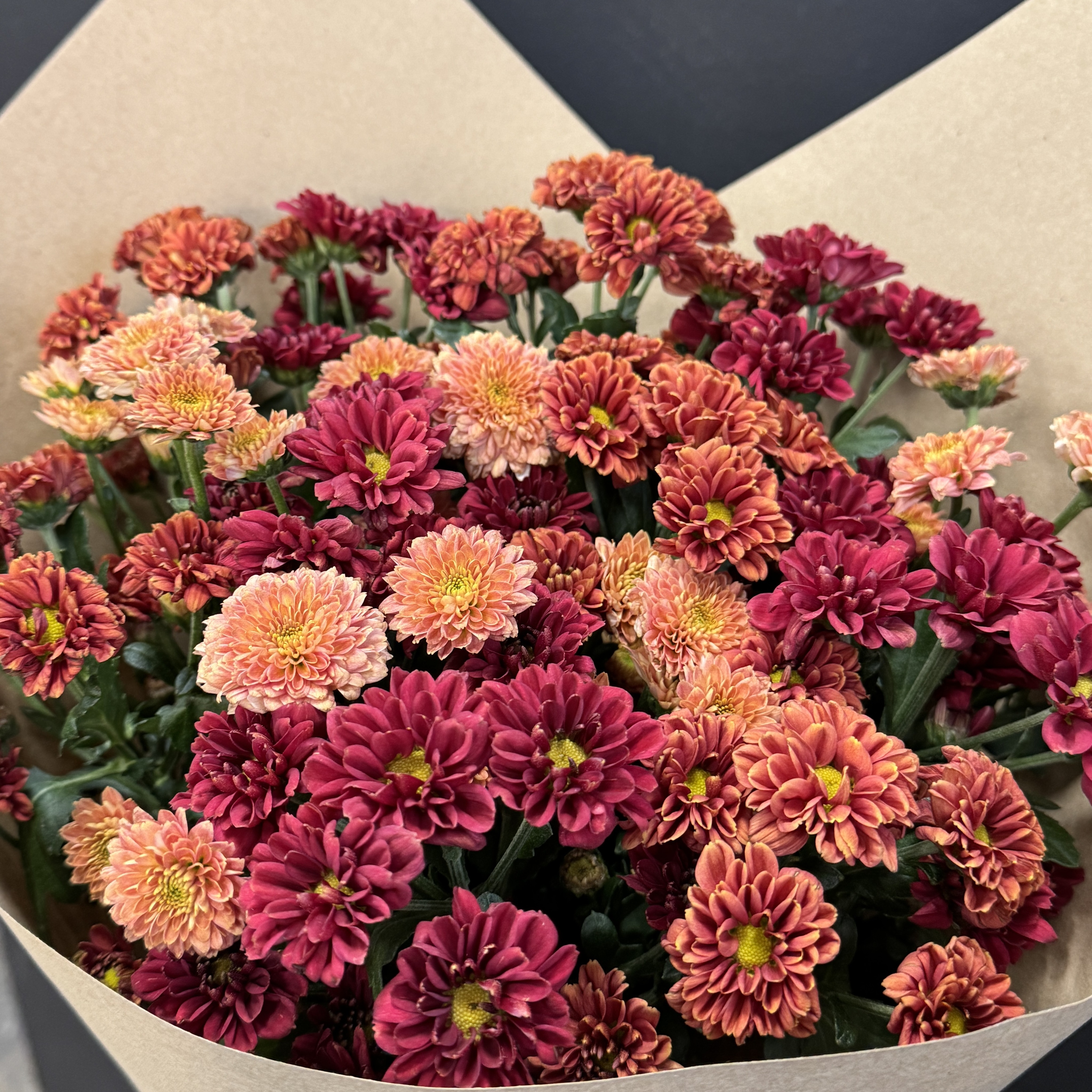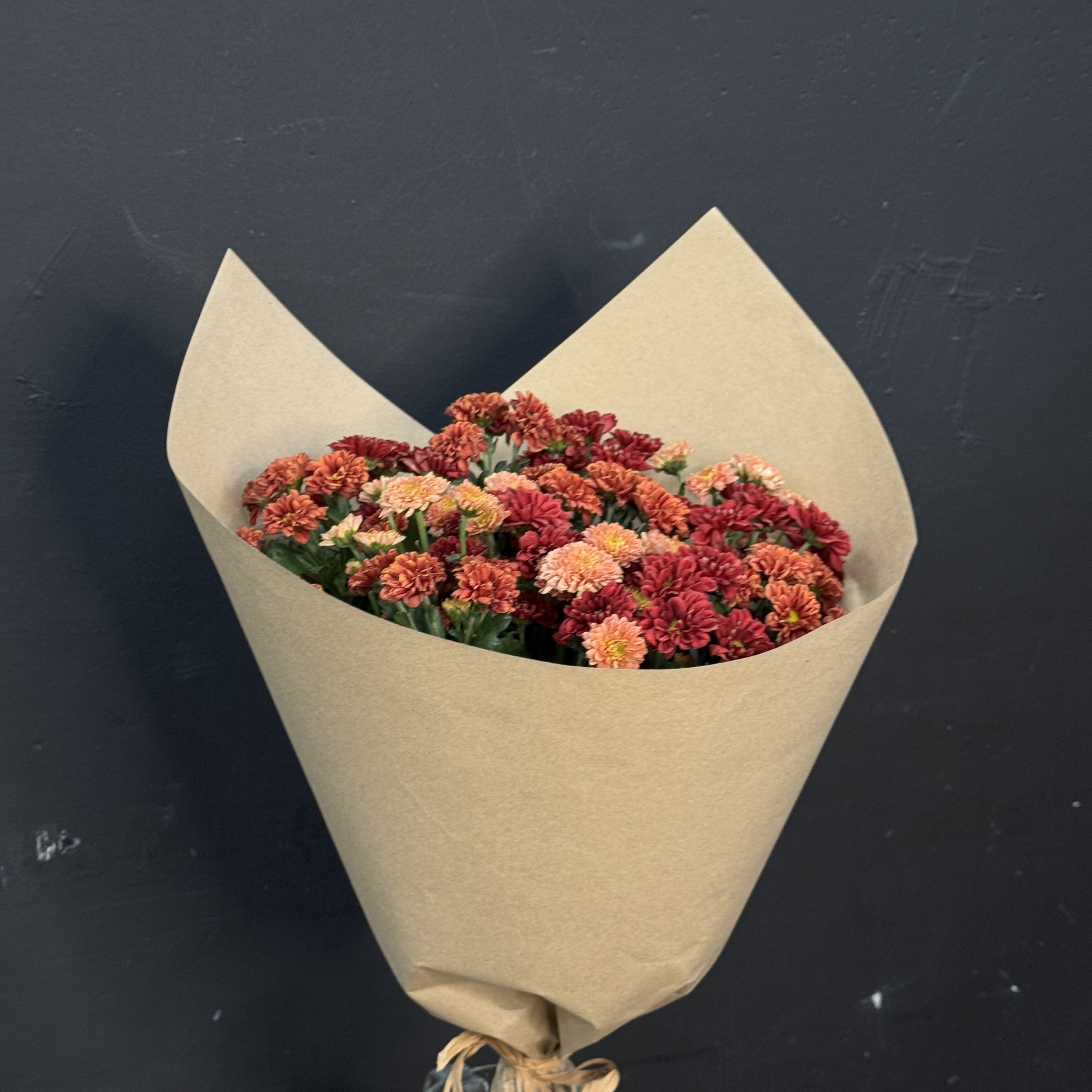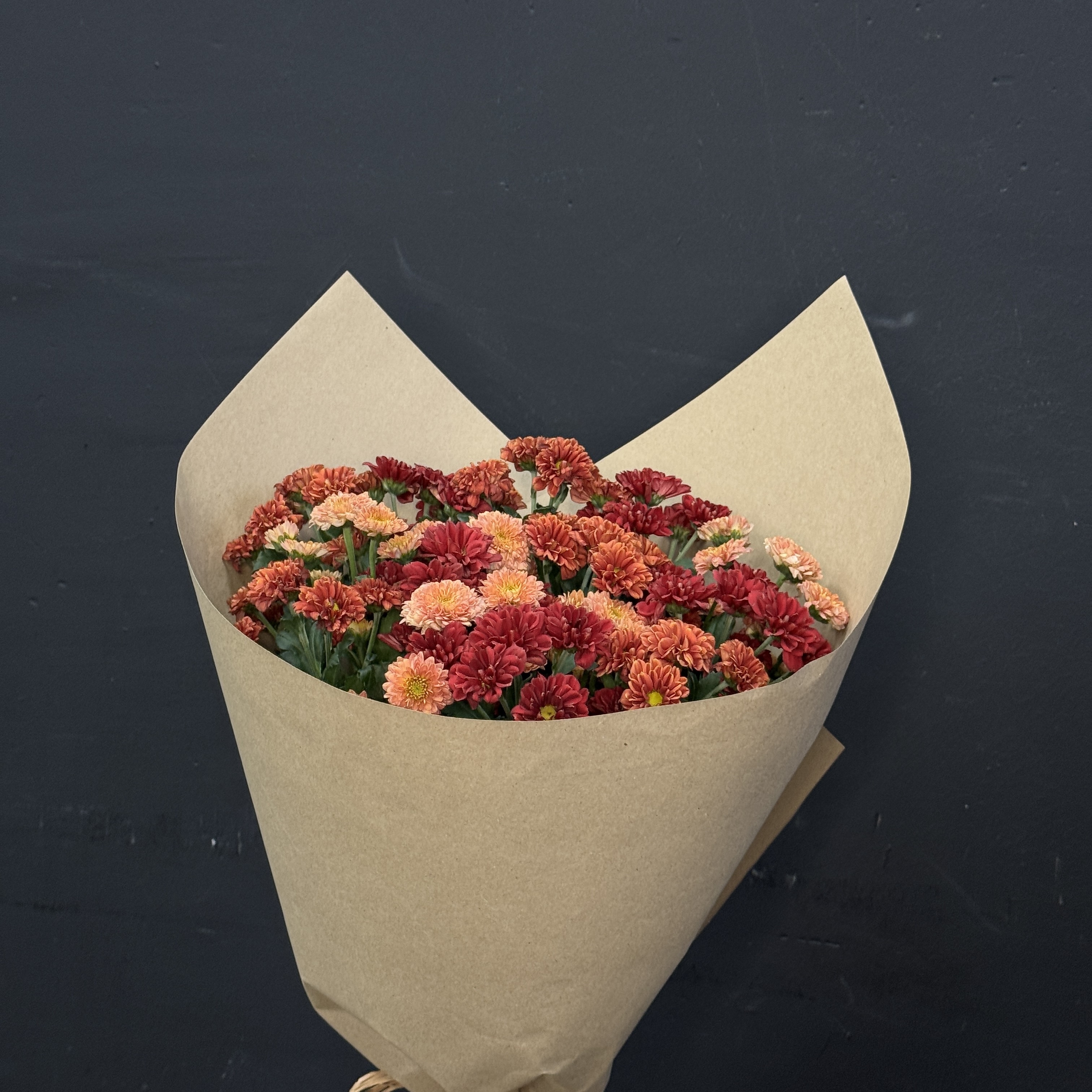 Осень – идеальное время подарить тепло и уют! Букет из 15 осенних хризантем сантини в стильной крафтовой упаковке станет незабываемым сюрпризом для ваших близких. Доставим радость прямо к двери вашего дорогого человека без лишних хлопот и забот! Создайте атмосферу уюта уже сегодня!
