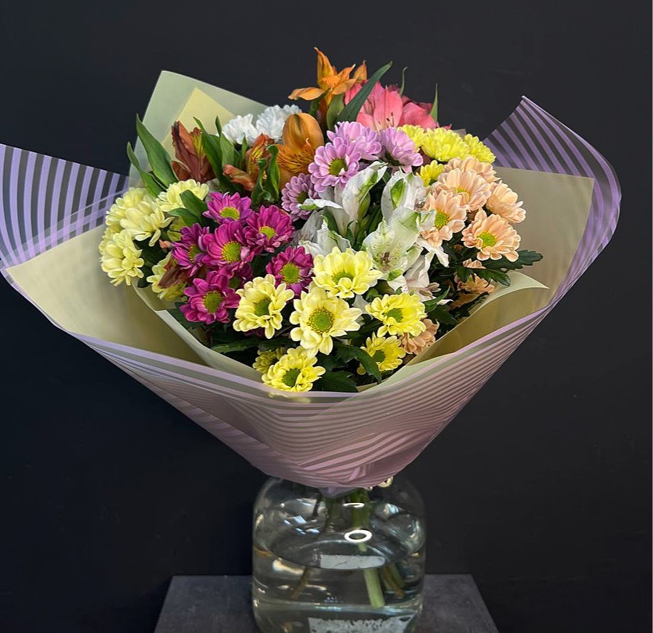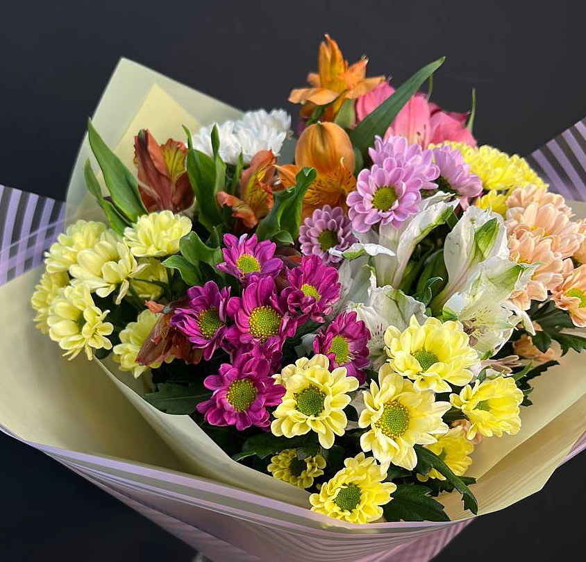 Погрузитесь в море ярких эмоций вместе с букетом от бренда «MyCvety»! Хризантемы и альстромерии подарят атмосферу тепла, радости и вдохновения. Яркие оттенки подчеркнут индивидуальность получателя и создадут праздничное настроение. Этот букет — идеальный способ выразить любовь, заботу и внимание к близким людям. Создайте незабываемые моменты вместе уже сегодня!
