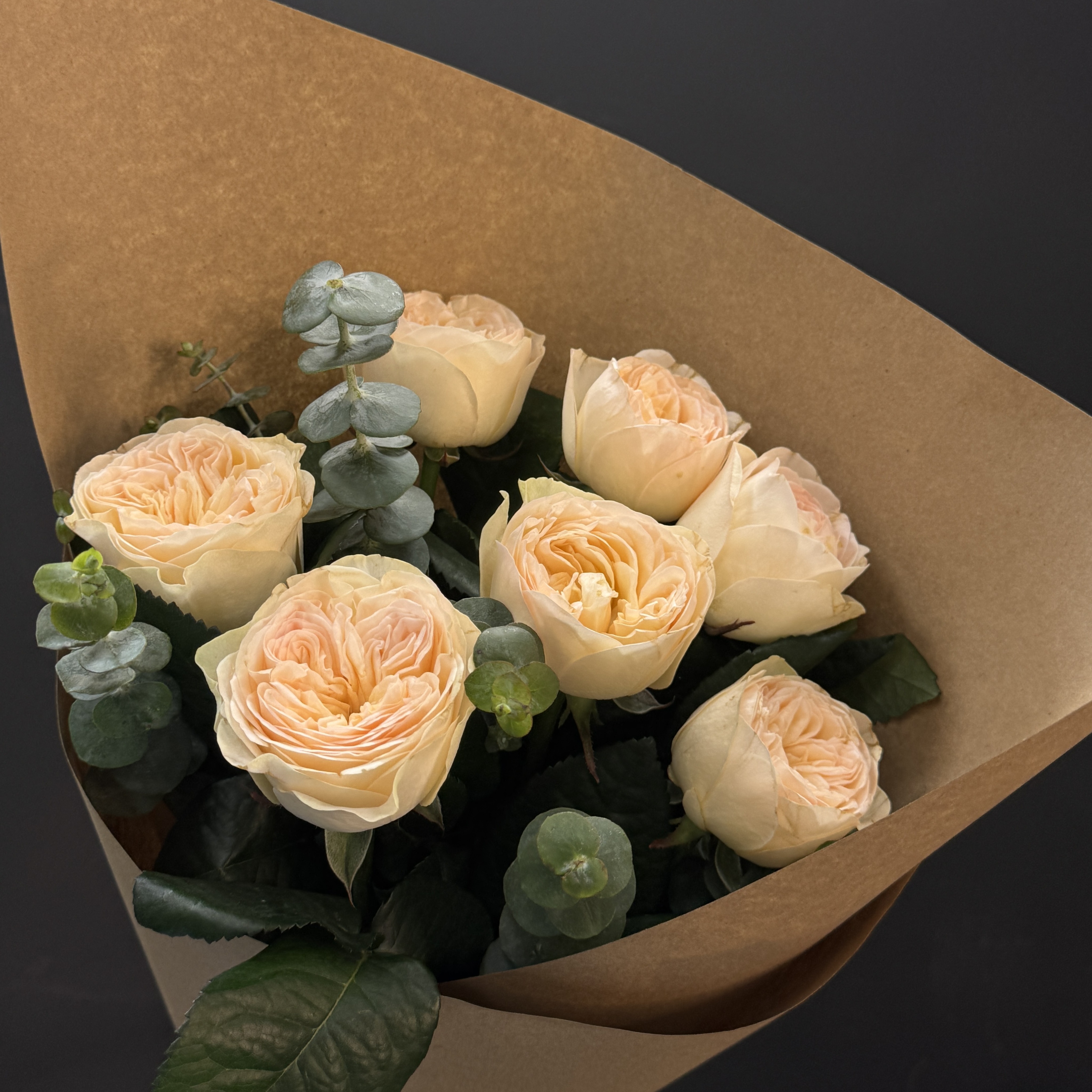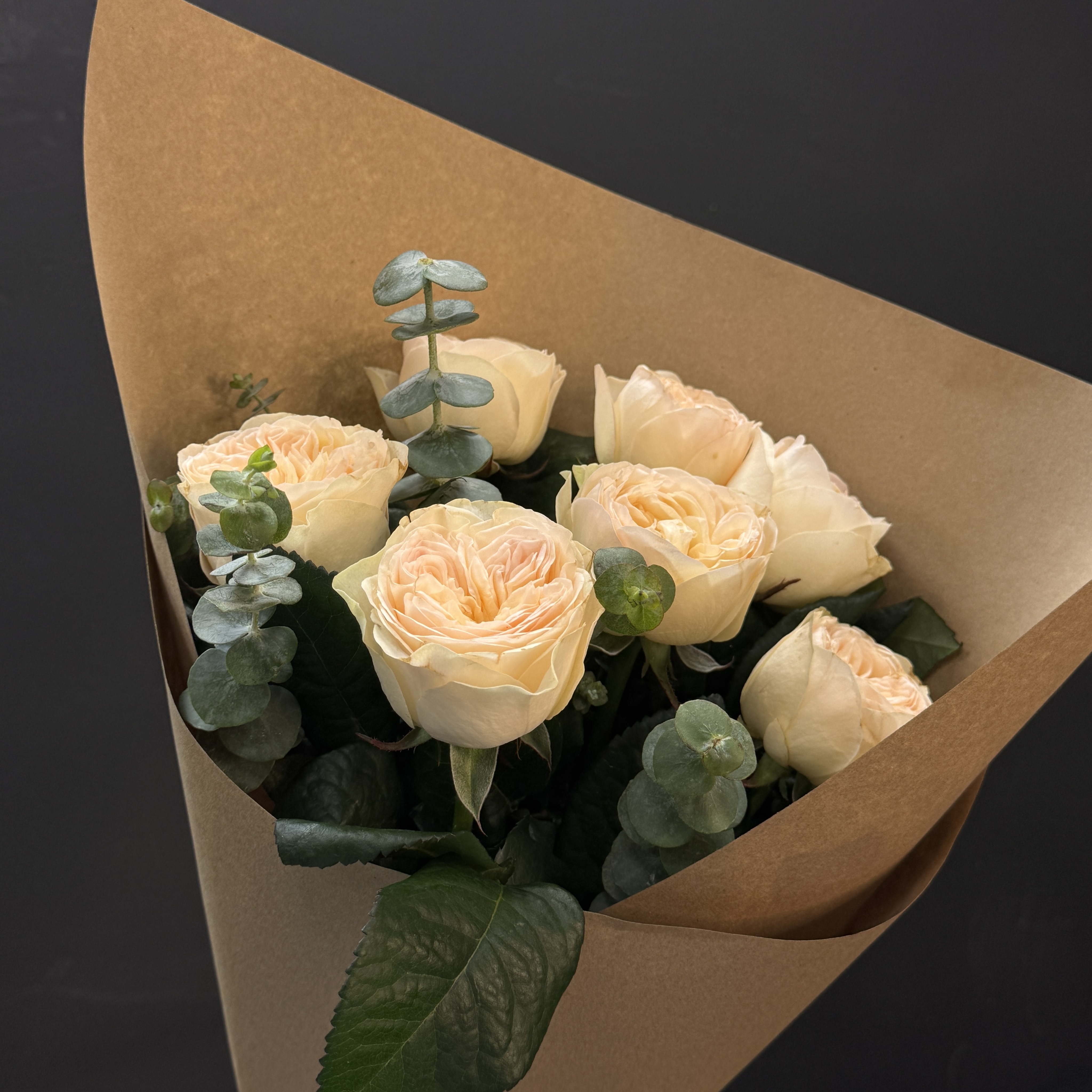 Пионовидные розы – воплощение элегантности и роскоши! Их крупные бутоны, нежные оттенки и утонченный аромат подарят истинное наслаждение получателю. Элегантная композиция с добавлением свежего эвкалипта придает букету особый шарм и свежесть. Идеальный подарок по любому поводу: день рождения, юбилей, романтическое свидание или просто чтобы порадовать любимых людей. Балуйте близких красотой и изысканностью нашего уникального букета!