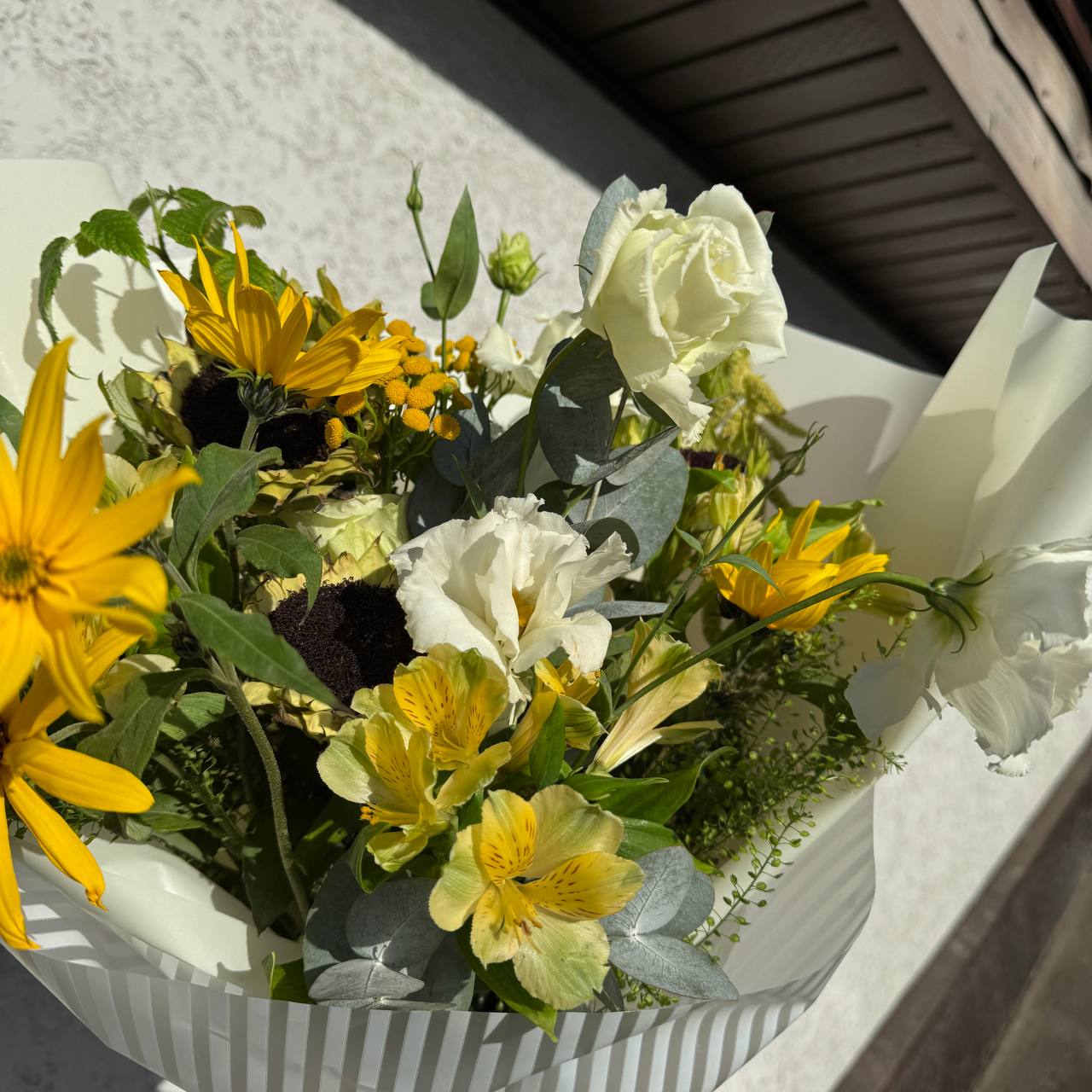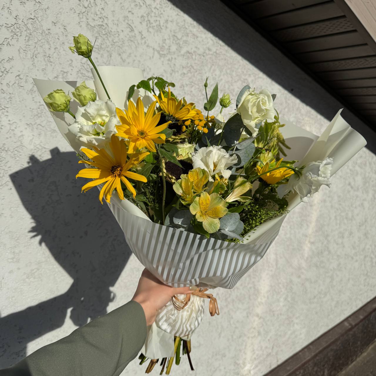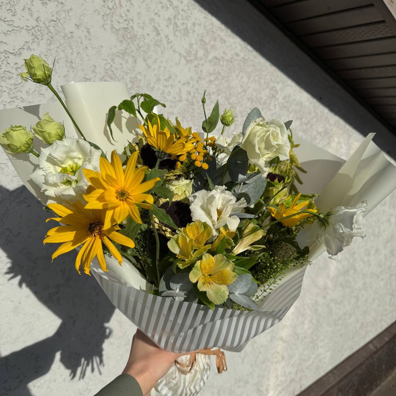Такой букет станет отличным подарком для любого повода: дня рождения, благодарности, поздравления с успехом или просто как знак внимания. Его гармоничное сочетание белых и жёлтых оттенков подойдёт и для женщин, и для мужчин.