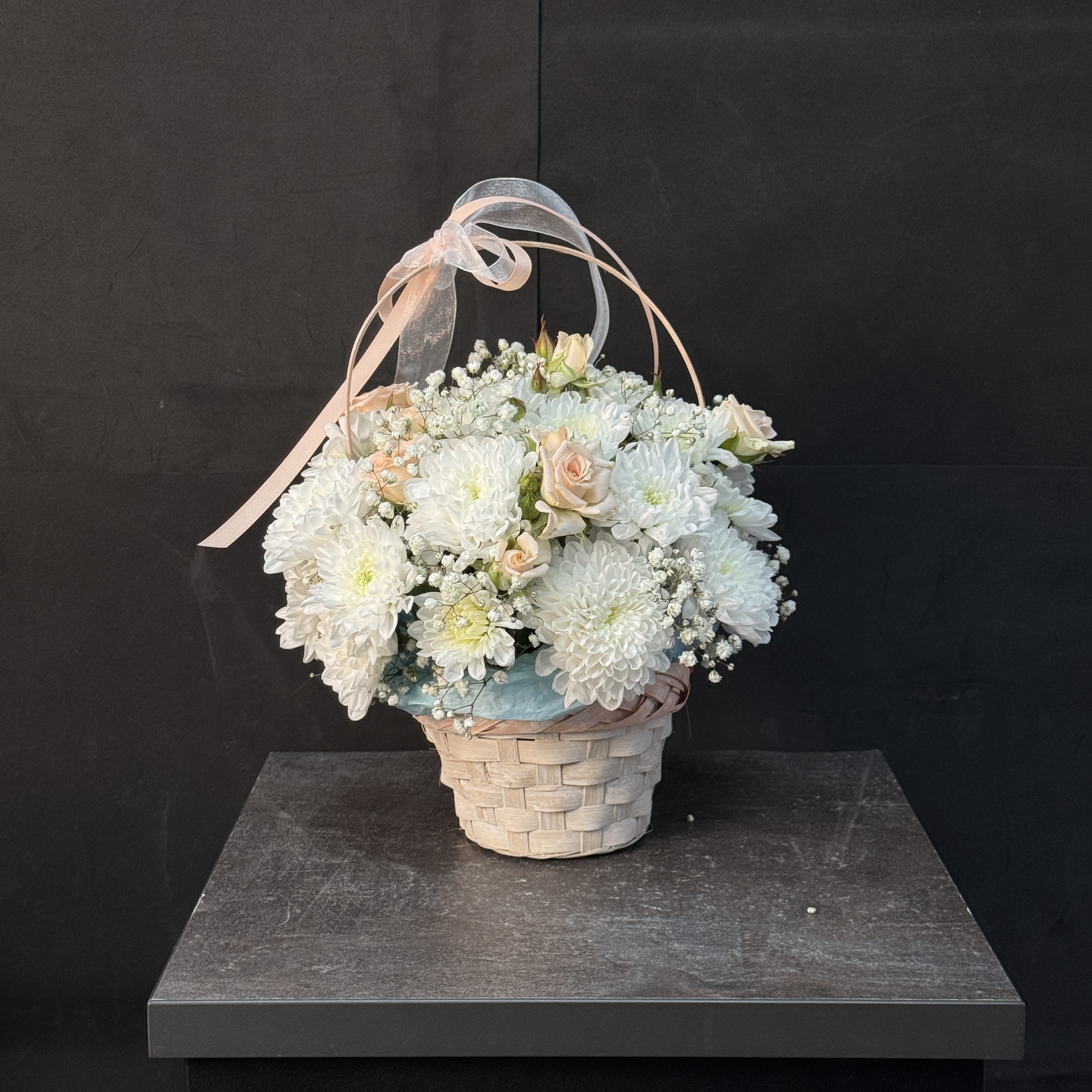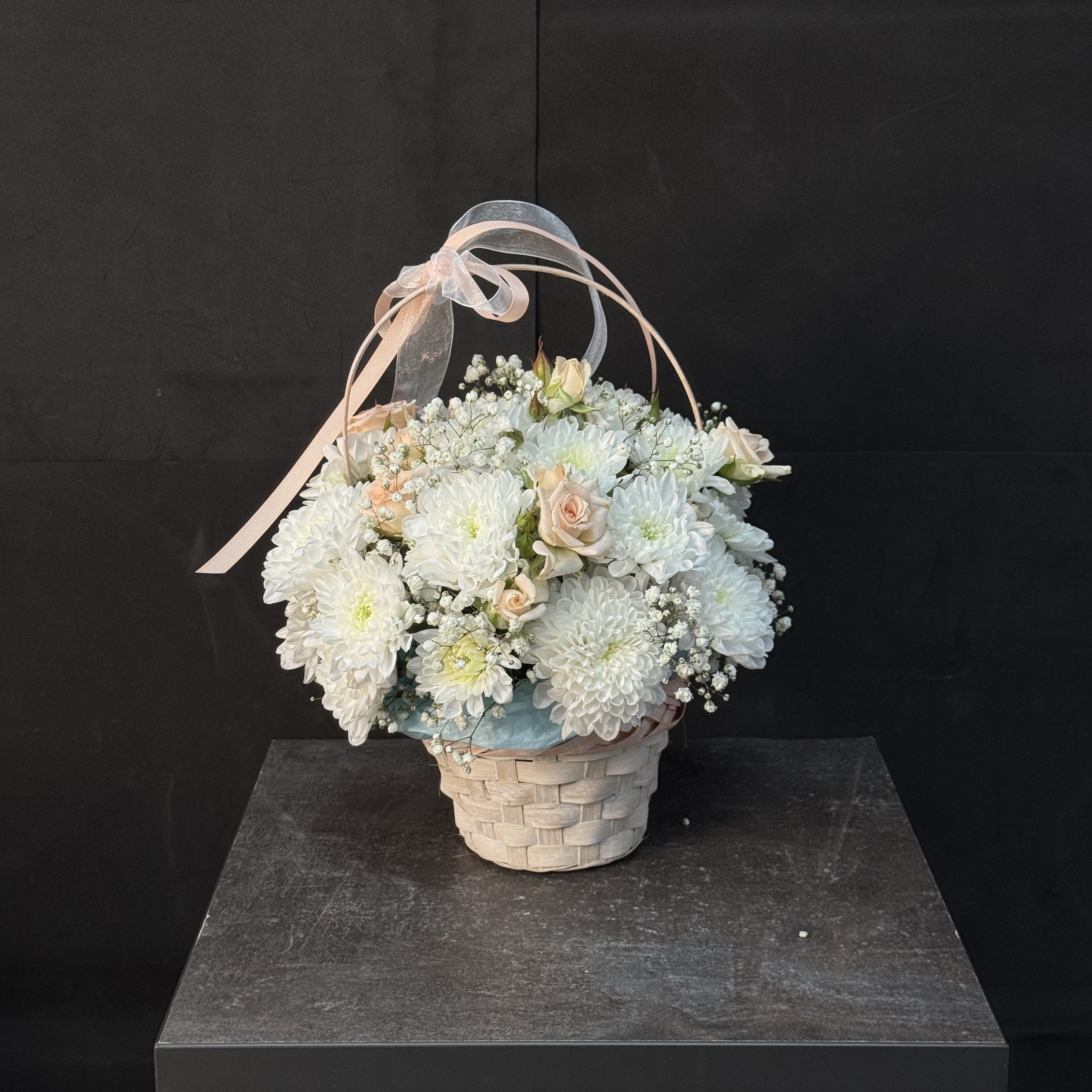 Подарите близким тёплые эмоции с корзинкой «Хризантема и Кустовая Роза»! Элегантное сочетание нежных оттенков и ароматов создаст атмосферу уюта и праздника. Доставим вашу заботу прямо домой или в офис любимого человека – выберите этот букет и скажите о своих чувствах красиво и искренне!